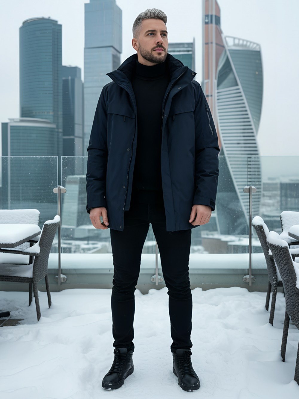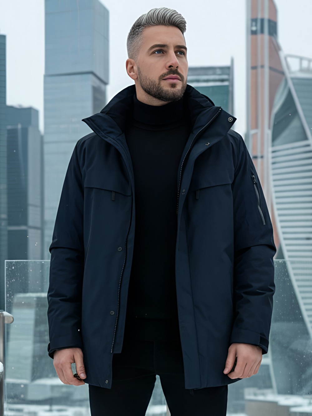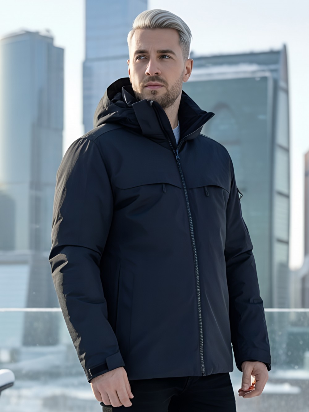 Плотная износостойкая ткань и продуманный утепляющий пакет работают как единая система защиты. Влагозащитные молнии YKK и аккуратно обработанные швы препятствуют промоканию, высокая горловина с мягким флисом бережно закрывает шею. Съёмный капюшон легко подстраивается по объёму, а манжеты и нижний край фиксируются так, чтобы внутрь не попадал снег.