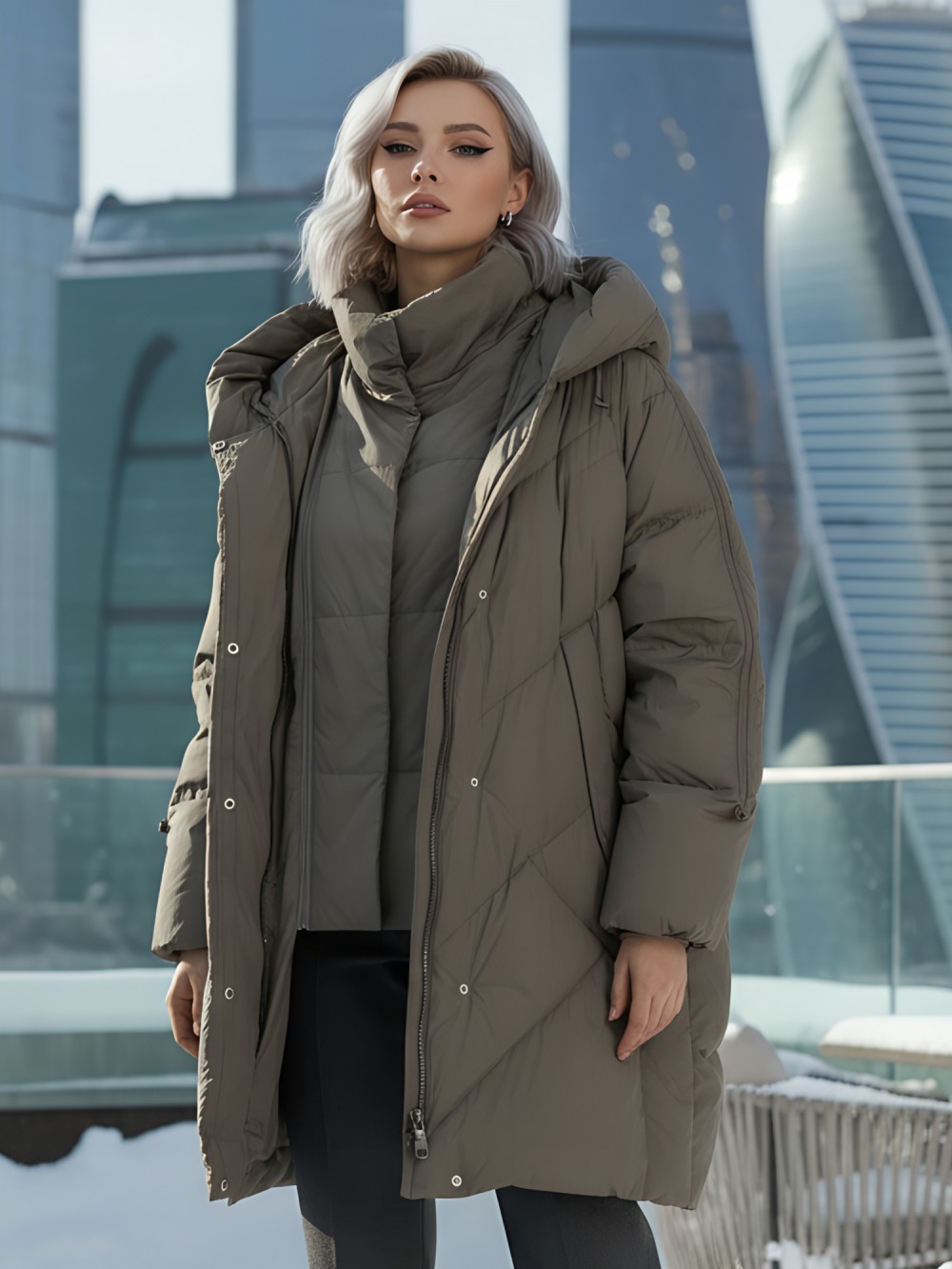 Роскошное зимнее пальто двубортное - ваш идеальный выбор для холодного сезона! Создано специально для женщин, которые ценят комфорт и элегантность в любую погоду. Представляем вам современное решение для зимнего гардероба - утепленное пальто премиум-класса, которое станет вашим надежным спутником при температуре от 0° до -25°C. Благодаря высокотехнологичной мембране с водонепроницаемостью 7000 мм, вы останетесь сухой даже в метель и дождь. Уникальный крой пальто подчеркнет вашу фигуру, а удлиненный силуэт до колена создаст элегантный образ. Качественный синтепон плотностью 240 г/кв.м и весом от 400 до 580 грамм обеспечит непревзойденное тепло без лишнего объема. Продуманные детали делают это пальто особенным: съемный стоячий воротник и несъемный капюшон для максимальной защиты, удобные магнитные карманы и внутренние отделения для ваших вещей, двойная молния с ветрозащитным клапаном, фиксаторы на капюшоне, рукавах и по низу для идеальной посадки, стильные декоративные пуговицы и кокетка подчеркнут ваш безупречный вкус. Доступные размеры от 46 до 54 и рост от 165 до 195 см позволят подобрать идеальную посадку. Выберите свой идеальный цвет: благородный коричневый, классический черный, нежный светло-коричневый или модный зеленый. Пальто из коллекции Осень-зима 2025 сочетает в себе последние технологии: быстросохнущий материал, надежная защита от ветра, водоотталкивающее покрытие, гипоаллергенные материалы, дышащая структура ткани. Это пальто станет вашим любимым выбором для офиса, учебы и повседневных прогулок. Наслаждайтесь комфортом и уверенностью в своей неотразимости каждый день! Успейте приобрести свое идеальное зимнее пальто прямо сейчас и встречайте холода во всеоружии!