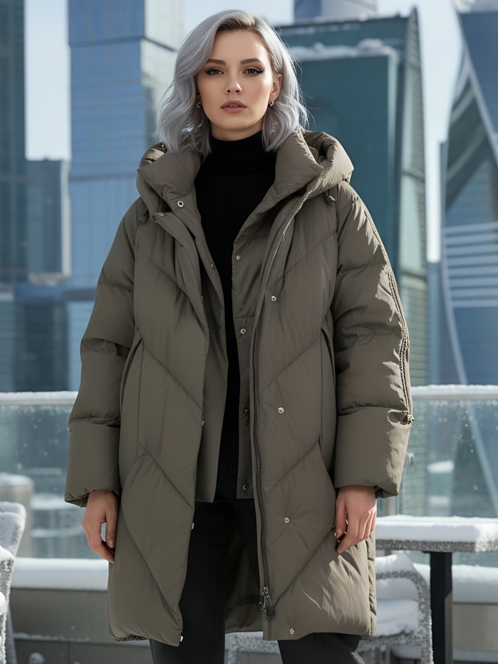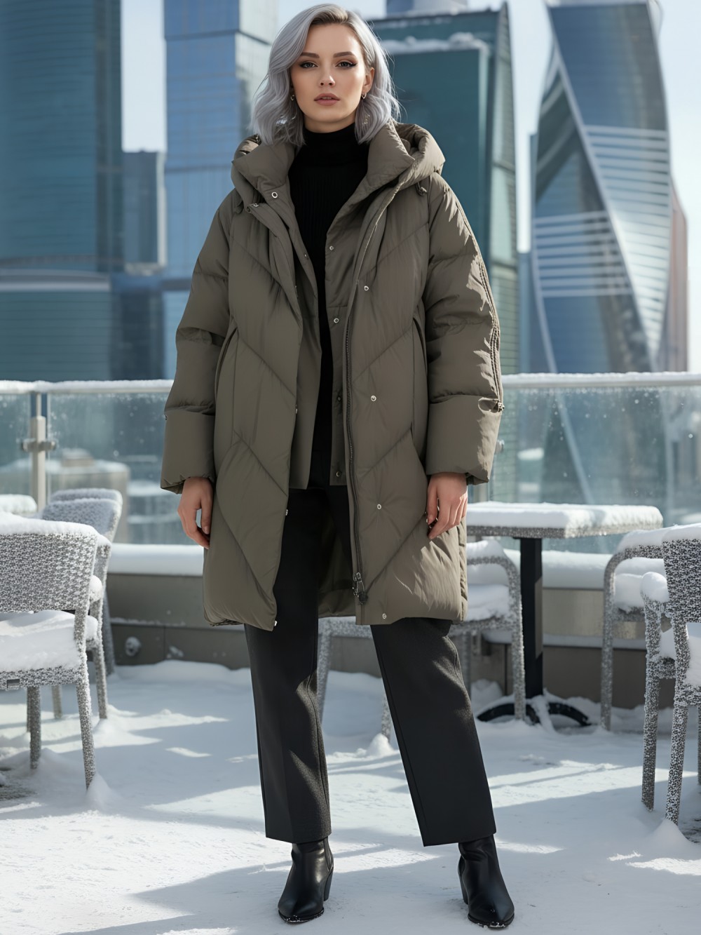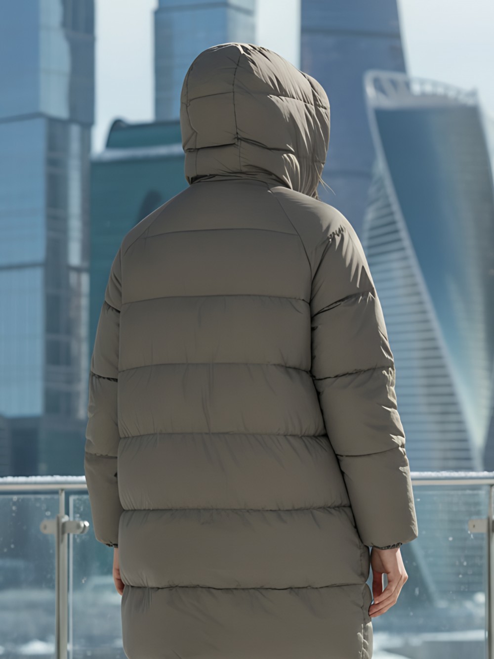 Надёжно защищает от холода, ветра и осадков. Идеален для зимней погоды, не требует головного убора.