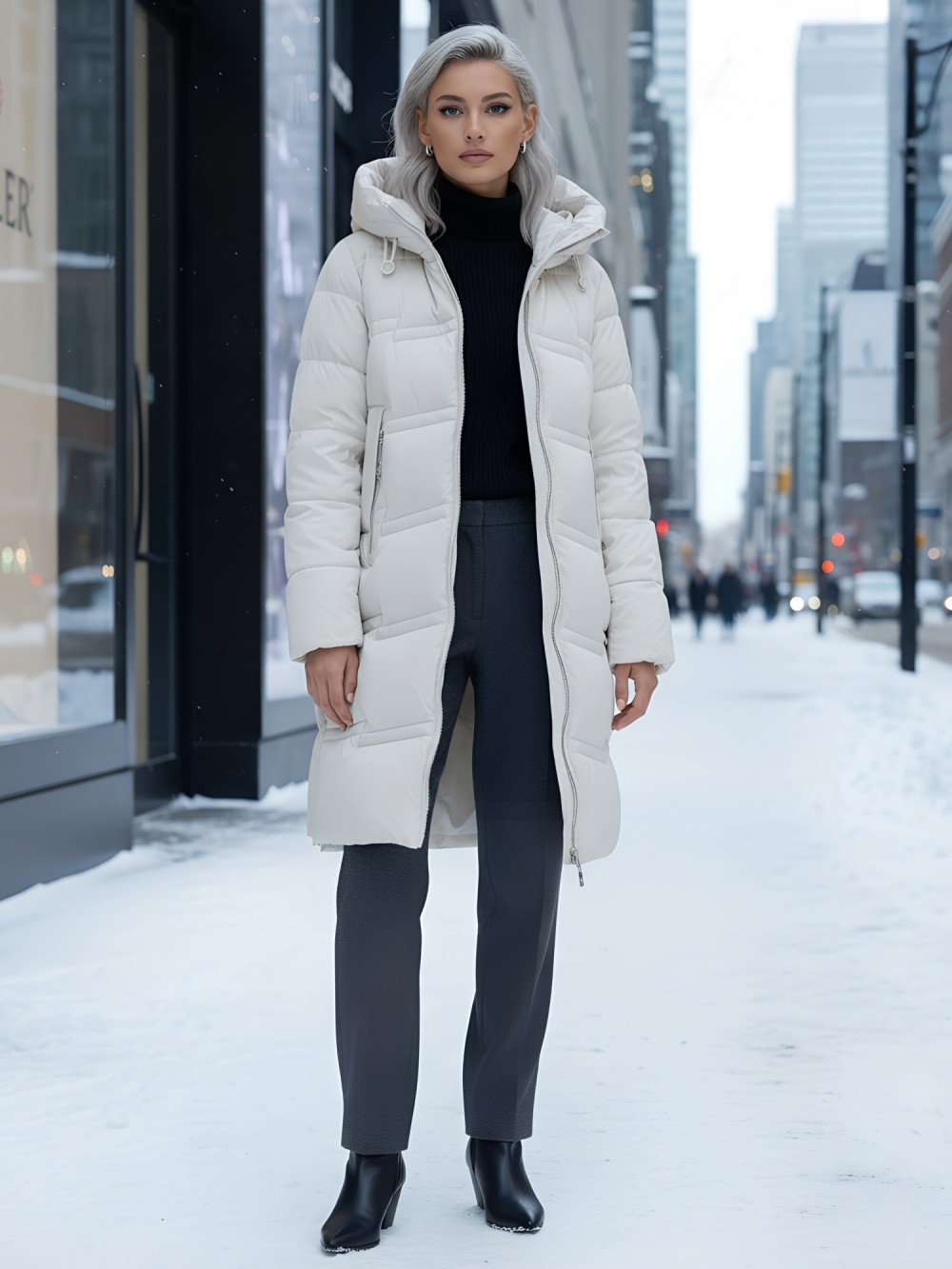 Зимнее утепленное пальто с капюшоном для женщин: Ваш идеальный спутник в холодные дни! Погрузитесь в мир стиля и комфорта с нашим зимним утепленным пальто, созданным для женщин, которые ценят элегантность и функциональность. Это пальто станет вашим незаменимым помощником в борьбе с холодом, придавая вам уверенность и тепло в самые суровые зимние дни. Главные преимущества: Уникальный теплоизоляционный материал: Синтепон плотностью 220 г/кв.м обеспечивает отличную теплоизоляцию при температуре от 0° до -25°C, позволяя вам наслаждаться зимними прогулками без страха замерзнуть. Водонепроницаемость: Мембранные материалы с водонепроницаемостью 7000 мм защитят вас от дождя и снега, гарантируя, что даже в непогоду вы будете выглядеть безупречно. Элегантный дизайн: Удлиненный покрой до колена и прямой/свободный силуэт подчеркивают вашу фигуру, придавая вам стильный и современный вид. Доступные размеры от 48 до 56 и рост от 165 до 195 см позволяют выбрать идеальную посадку для любой фигуры. Практичные детали: Не съемный капюшон, внутренние карманы для хранения необходимых мелочей, а также удобная двойная молния делают это пальто не только стильным, но и функциональным. Комфорт на высшем уровне: Быстросохнущий, ветрозащитный и водоотталкивающий материал обеспечивает максимальный комфорт в любых условиях. Гипоаллергенные и дышащие ткани гарантируют, что вы будете чувствовать себя комфортно в течение всего дня. Стиль и универсальность: Это пальто идеально подходит как для офисных будней, так и для повседневных прогулок. Его можно сочетать с различными нарядами, будь то классический или спортивный стиль. Доступные цвета: коричневый, черный, светло-коричневый и темно-серый — вы точно найдете свой идеальный вариант. Не упустите шанс стать обладательницей этого великолепного пальто! Покупая его, вы инвестируете в качество, стиль и комфорт. Закажите сегодня и наслаждайтесь каждым моментом зимы, оставаясь стильной и защищенной от холода!