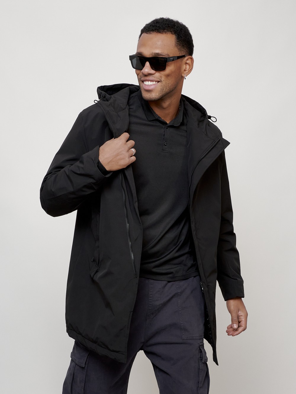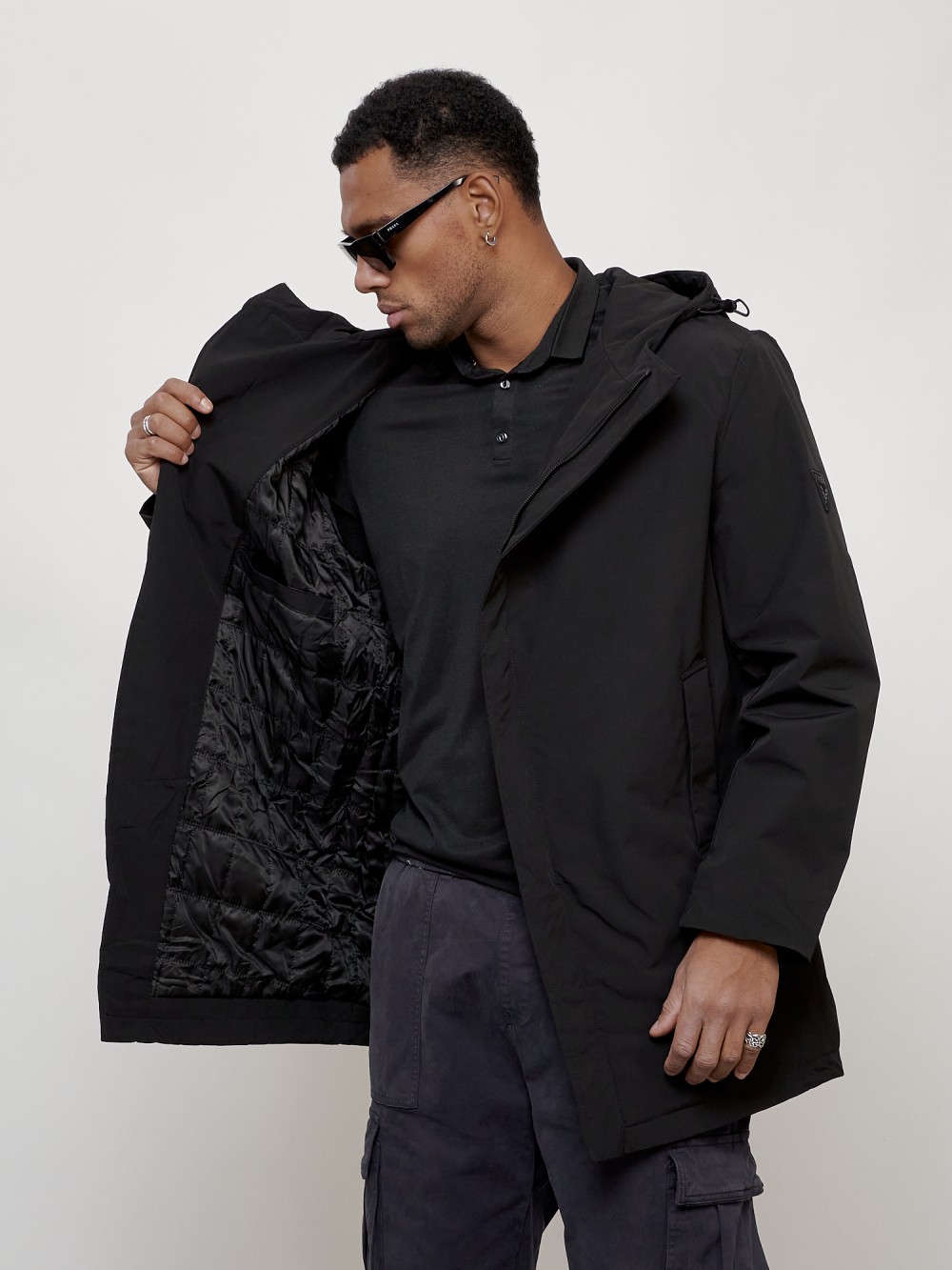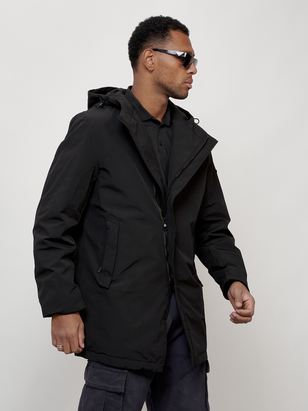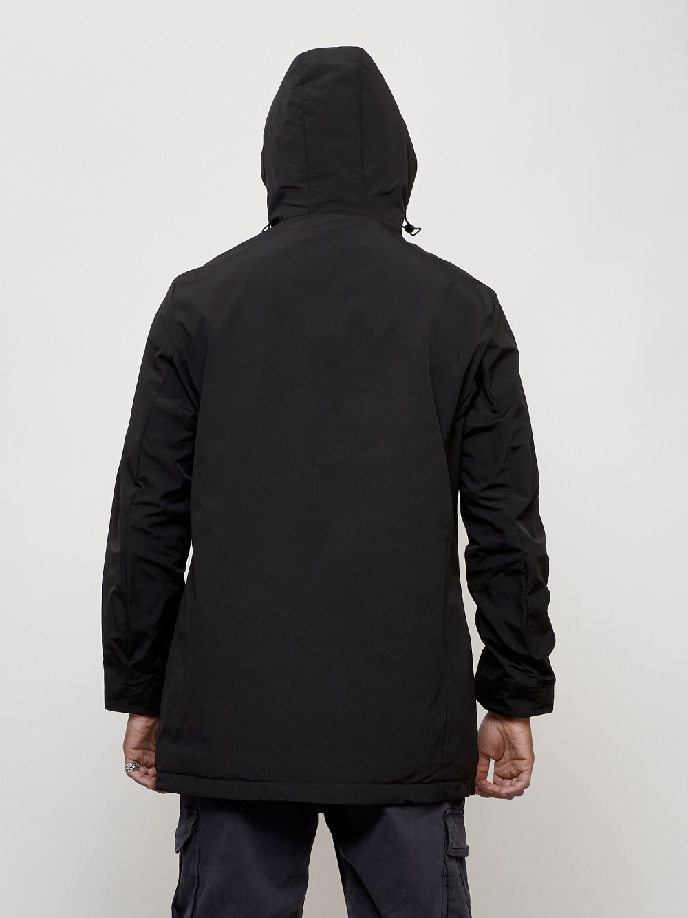 Парка косуха мужская демисезонная УЦЕНКА черного цвета 0944Ch